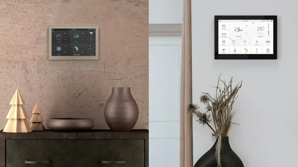 - Flat / Tecla: tastiere in vetro con icone retroilluminate, sensori e termostato integrabile.